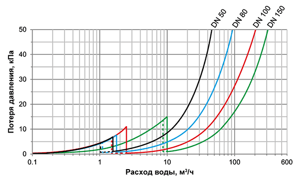 | Переходный расход* | Qt | м3/ч | 0.12 | 0.2 | 0.28 | 0.48 | 0.8 | 3 |